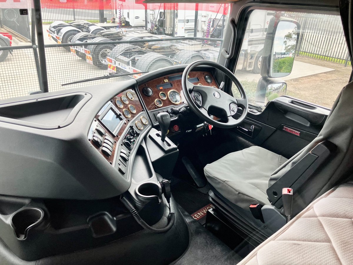 2023 Kenworth K200 Sleeper Cab P/Mover, Cummins X15 with Eaton Ultrashift automated transmission, ESP (Prime Mover) Electronic Stability Program, ABS, AIRGLIDE 460 Suspension, alloy rims, Battery disconnect switch, Battery Isolation Switch, DANA Spicer Rear Axle Ratio 4.10, JOST Ball Race Turntable, Cab Cooler, Stone Guard, ABS Drum Brakes, ISRI Drivers seat, UHF and stereo.